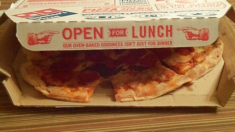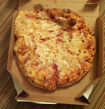 Here's another recent pie from this Domino's location, ordered by me about three or four weeks ago. This is how it was delivered: